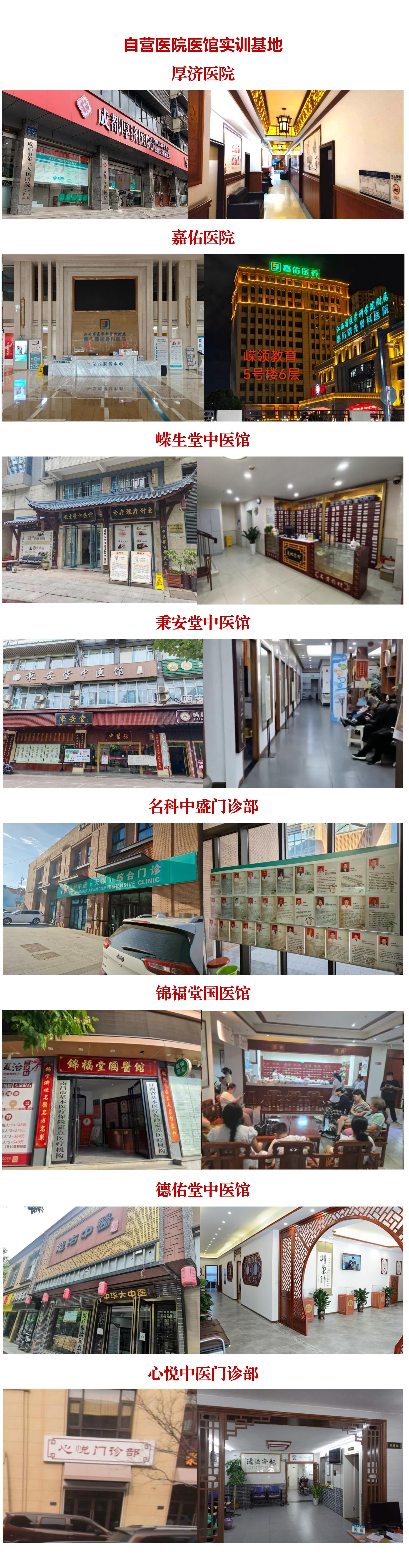 全國(guó)300多家醫(yī)院診所作為師承師資渠道,全國(guó)建立臨床實(shí)訓(xùn)基地——中醫(yī)大附屬醫(yī)院,省中醫(yī)院,中醫(yī)大國(guó)醫(yī)館,國(guó)醫(yī)堂,杏林春堂,??滇t(yī)院,北辰中醫(yī)院,醫(yī)大二院,銘醫(yī)堂,厚濟(jì)醫(yī)院,名科中盛,秉安堂,德佑堂,寶芝堂……師資儲(chǔ)備充裕,為中醫(yī)師承,確有專(zhuān)長(zhǎng)學(xué)員按區(qū)縣匹配師資,做到師承學(xué)員就近跟師。同時(shí)助理醫(yī)師,執(zhí)業(yè)醫(yī)師,藥考護(hù)考,健康營(yíng)養(yǎng)、康復(fù)理療等考培項(xiàng)目同步開(kāi)展。
