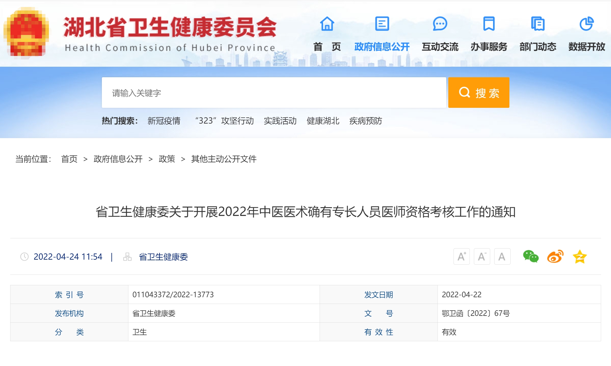(三)2022年湖北省中醫(yī)醫(yī)術確有專長人員醫(yī)師資格考核相關信息可登錄湖北省衛(wèi)生健康委員會網站(網址:http://wjw.hubei.gov.cn/)查詢和下載,或咨詢當地衛(wèi)生健康行政部門。