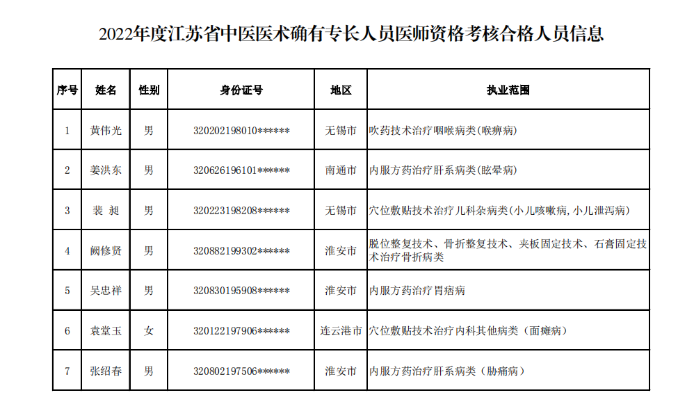 2022年度江蘇省中醫(yī)醫(yī)術確有專長人員醫(yī)師資格考核合格人員信息公示