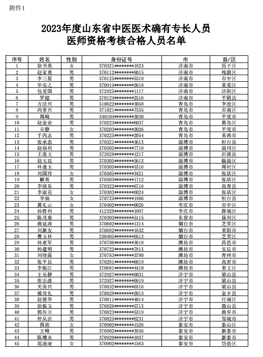 關(guān)于2023年度山東省中醫(yī)醫(yī)術(shù)確有專長人員醫(yī)師資格考核合格人員名單的公示