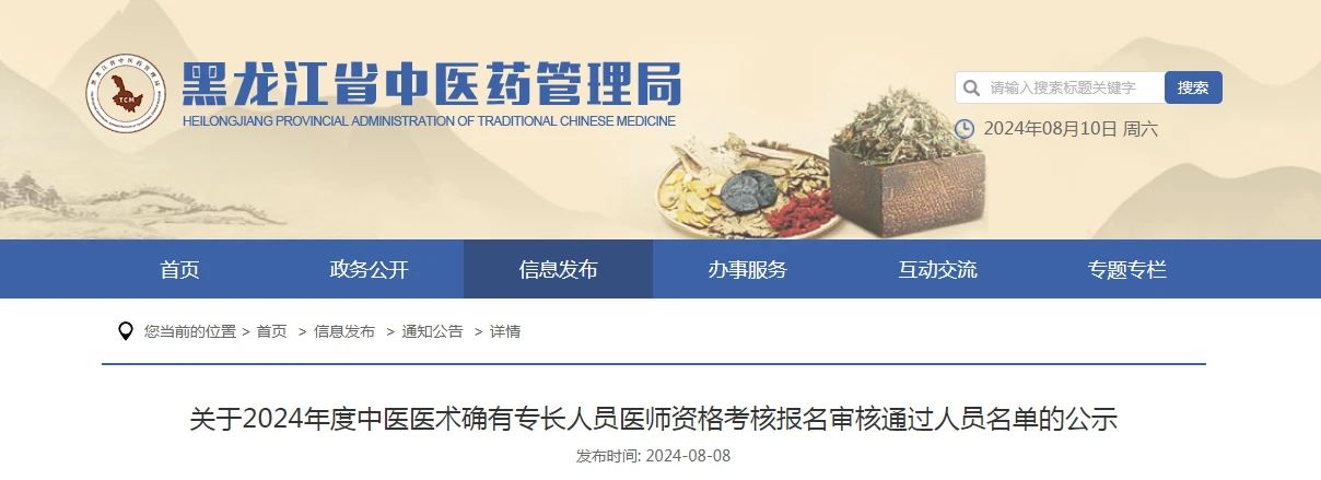 根據(jù)《關(guān)于開展 2024 年黑龍江省中醫(yī)醫(yī)術(shù)確有專長(zhǎng)人員醫(yī)師資格考核工作的通知》(黑中醫(yī)藥醫(yī)函〔2024〕8號(hào))工作要求,黑龍江省中醫(yī)藥管理局于2024年8月23-26日組織開展了中醫(yī)醫(yī)術(shù)確有專長(zhǎng)人員醫(yī)師資格考核。經(jīng)專家評(píng)議考核認(rèn)定,現(xiàn)將合格人員名單(見(jiàn)附件1)予以公示,公示期為2024年8月29日-9月4日(5個(gè)工作日)。