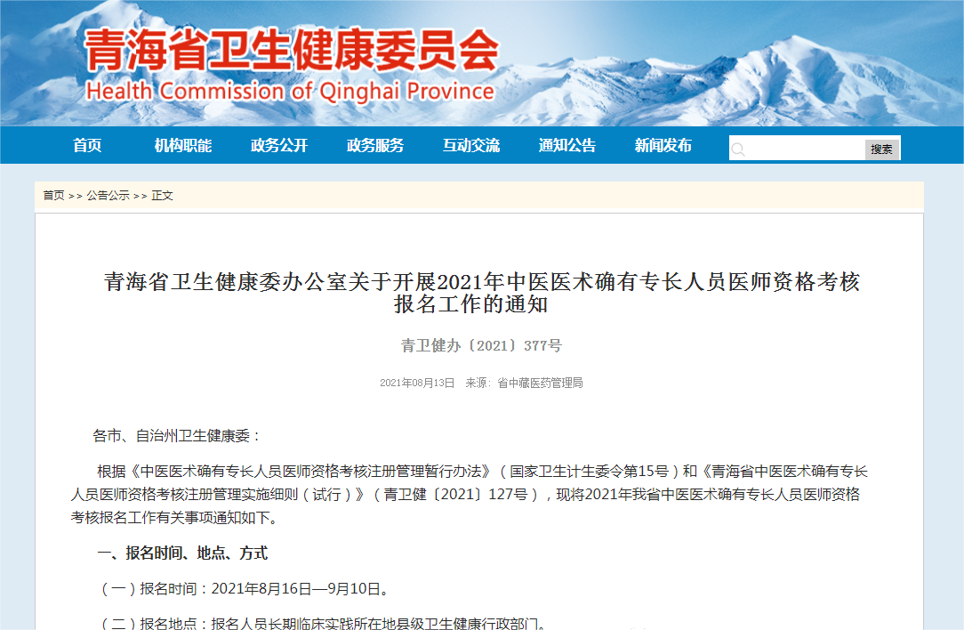 青海省衛(wèi)健委發(fā)布了2021年度中醫(yī)專長醫(yī)師報(bào)名公告,特轉(zhuǎn)載通知原文如下,青海省的中醫(yī)同道們,如有準(zhǔn)備報(bào)考專長醫(yī)師的請(qǐng)抓緊時(shí)間準(zhǔn)備材料了。