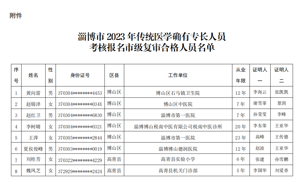 2023山東淄博傳統(tǒng)醫(yī)學(xué)確有專長報名復(fù)審人員名單(52號令)