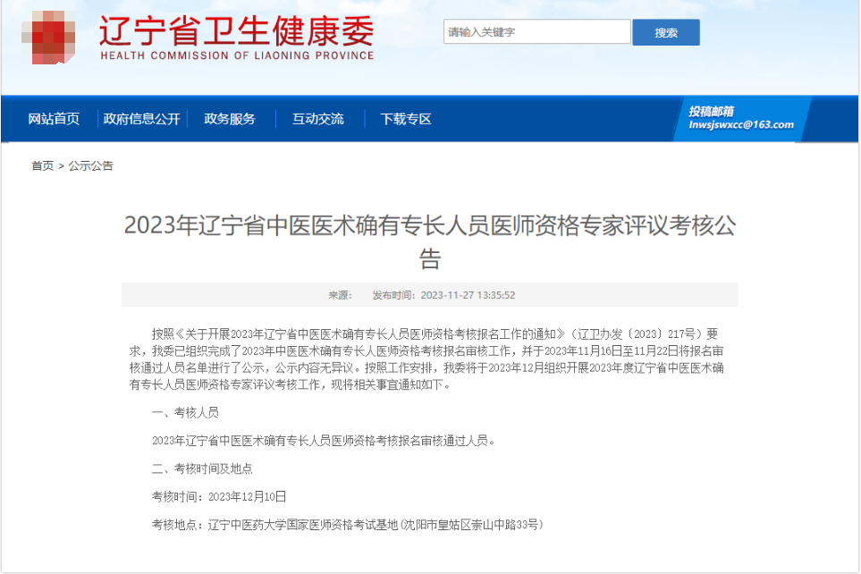 2023年遼寧省中醫(yī)醫(yī)術(shù)確有專長人員醫(yī)師資格專家評議考核公告