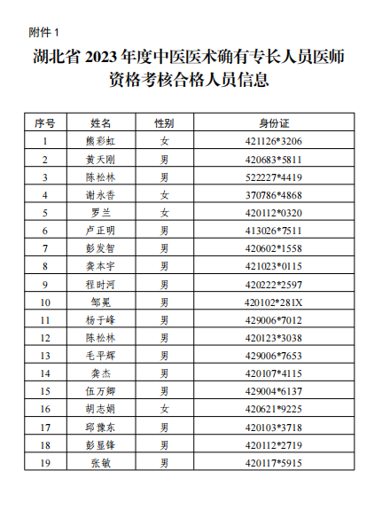 關(guān)于2023年度湖北省中醫(yī)醫(yī)術(shù)確有專長(zhǎng)人員醫(yī)師資格考核合格人員信息的公示