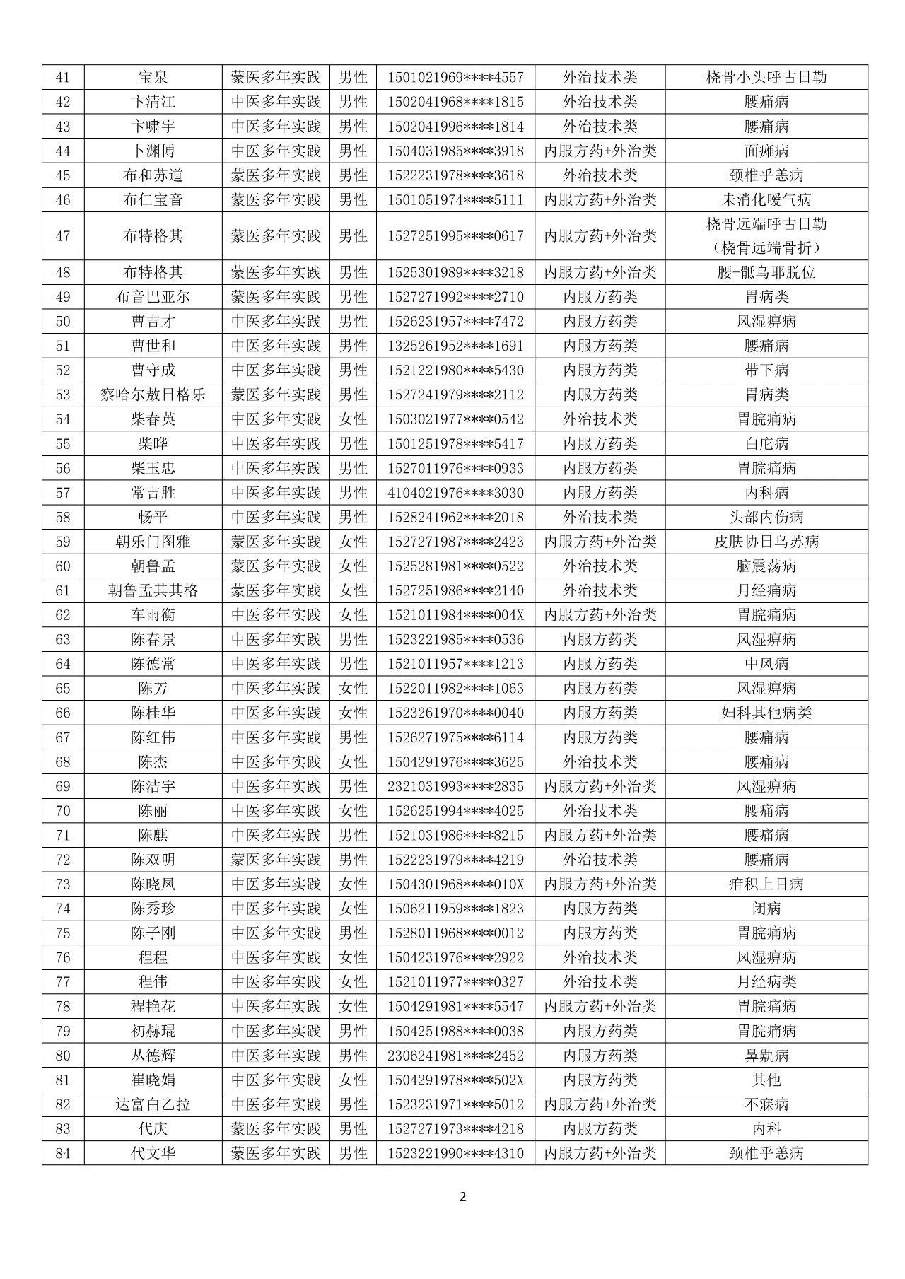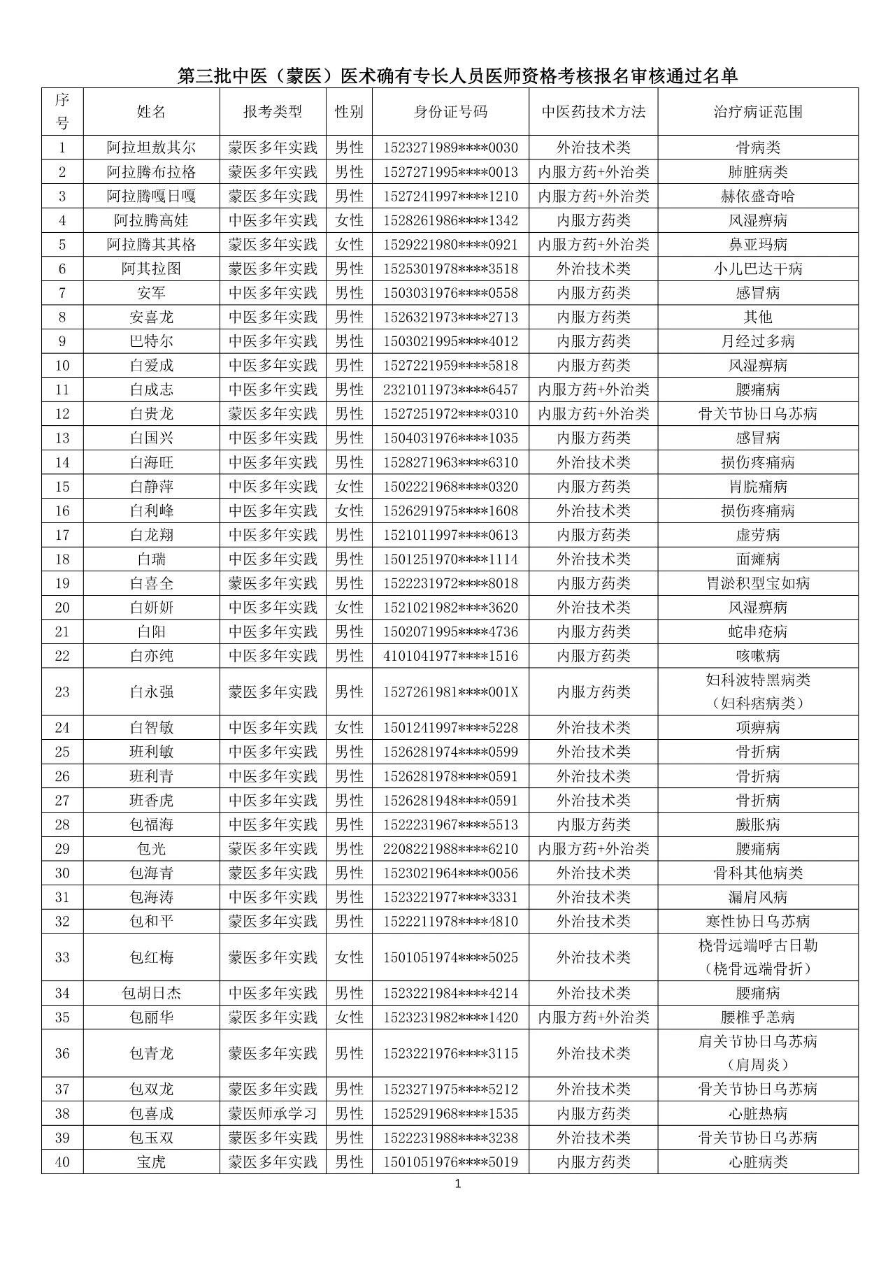 內(nèi)蒙古第三批中醫(yī)(蒙醫(yī))專長醫(yī)師考核資格審核合格人員公示