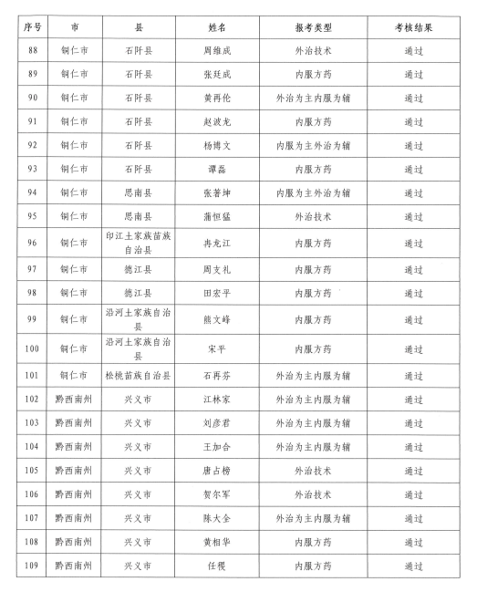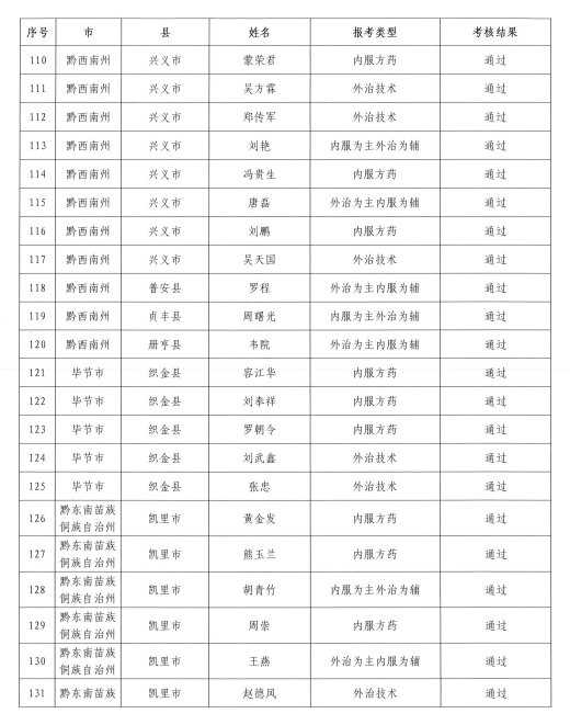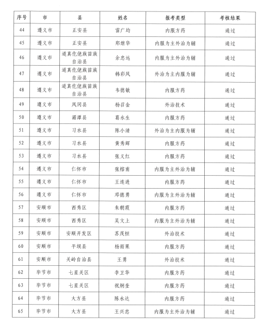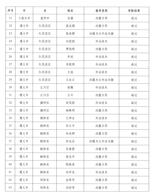 2021年度貴州省中醫(yī)醫(yī)術(shù)確有專長(zhǎng)人員醫(yī)師資格考核合格名單的公示