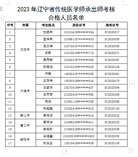 2023年遼寧省傳統(tǒng)醫(yī)學(xué)師承出師考核合格人員名單公示(52號(hào)令)