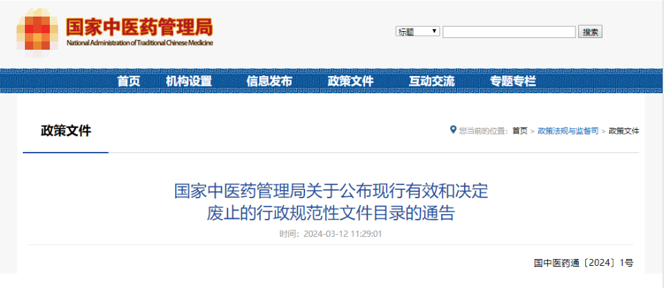 國家中醫(yī)藥管理局關(guān)于公布現(xiàn)行有效和決定廢止的行政規(guī)范性文件目錄的通告